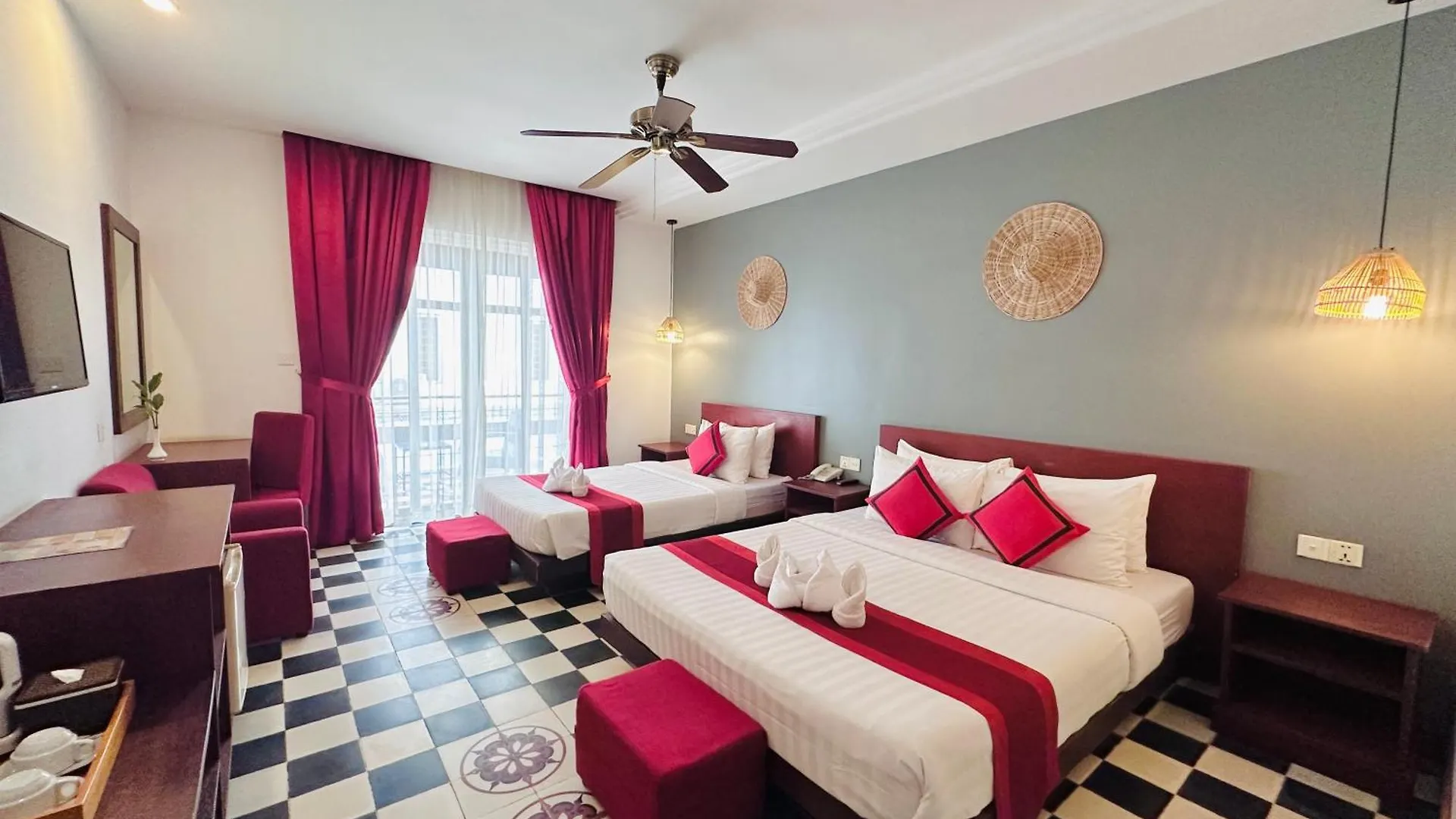 Das Mekong Angkor Palace Hotel empfängt seine Gäste in 52 Zimmern, die mit einer Klimaanlage sowie einem Flachbildfernseher mit Satellitenkanälen ausgestattet sind. In den privaten Badezimmern mit einer behindertengerechten Dusche und einer getrennten Toilette stehen den Gästen ein Haartrockner und Badelaken zur Verfügung. Von einigen Zimmern aus öffnet sich eine Aussicht auf die Stadt.